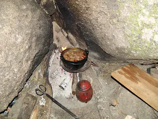 Preparando caldereta y café a la antigua usanza.