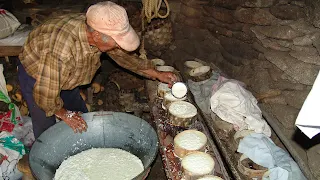 Paulino Gargantilla Serrano elaborando queso de forma artesanal.